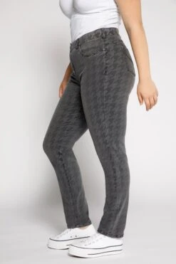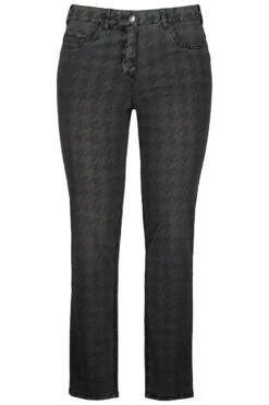 Jeans Sarah mit Hahnentritt Muster. Schmale 5-Pocket mit Komfort Bund, Gürtelschlaufen, Knopf und Zipper.
