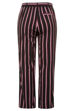 Streifenhose, konisch und glatt fallend. 2 Taschen, teilelastischer Komfortbund mit Gürtelschlaufen, Knopf und Zipper.