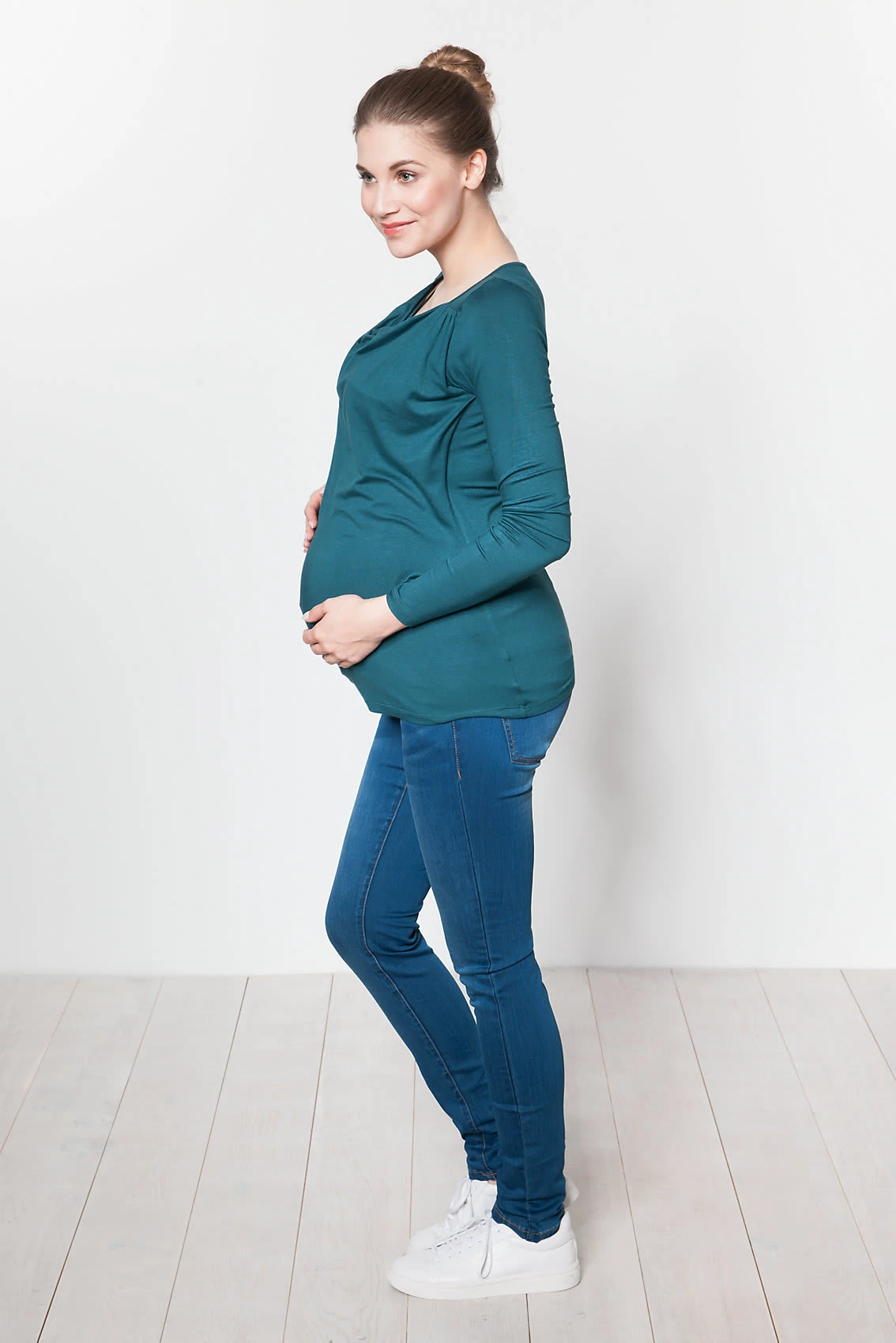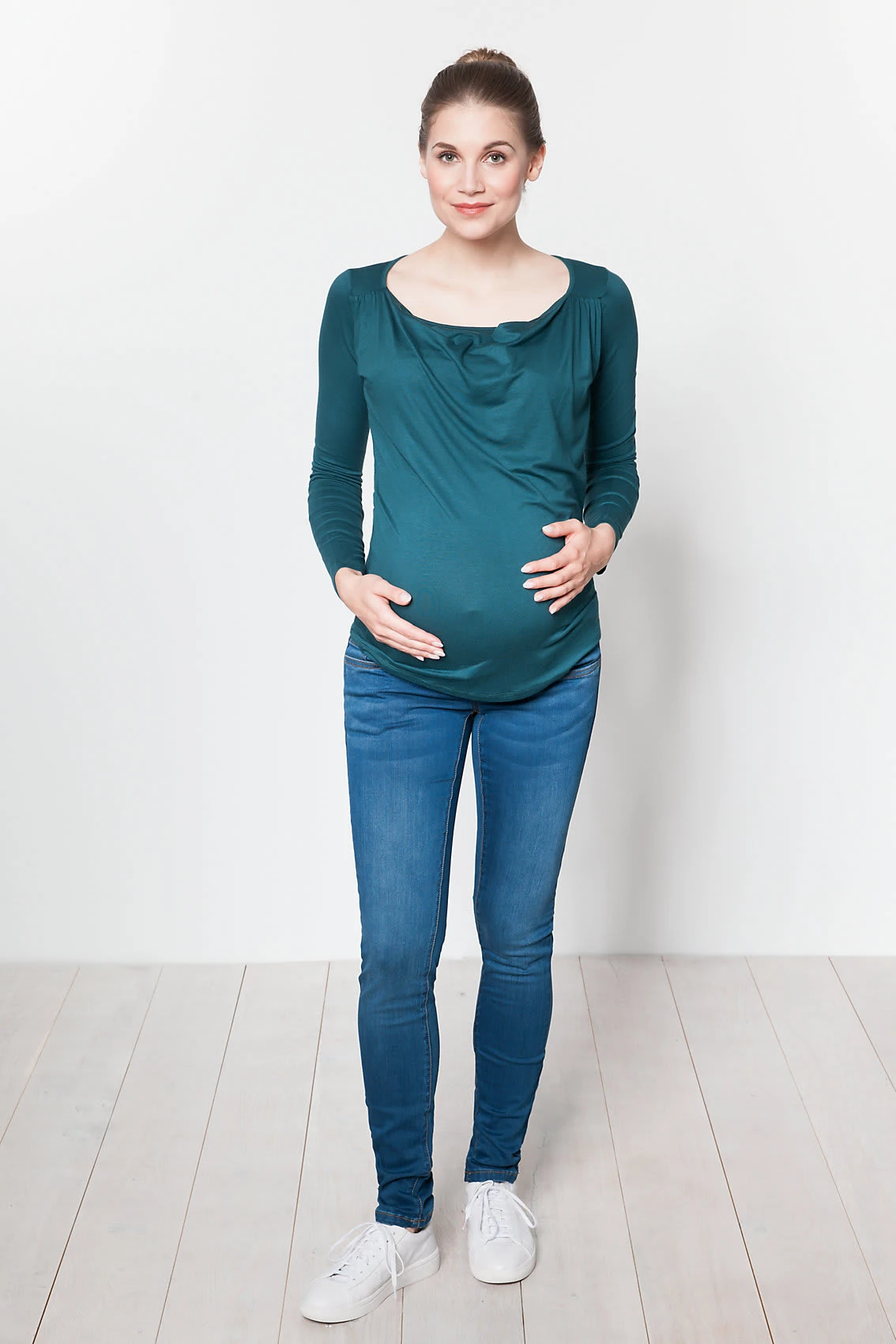 Die MAMALICIOUS Umstandsjeans MLFIFTYist mit einem weichen Überbauchbund aus meliertem Baumwolljersey ausgestattet und bietet dank des Stretchanteils eine angenehme Passform.