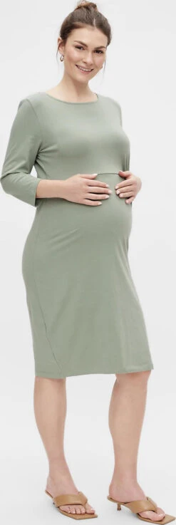 Der optimale Begleiter, um in der Schwangerschaft komfortabel und gleichzeitig hübsch gekleidet zu sein: das Umstandskleid der Marke mamalicious. Der Materialmix punktet mit elastischen Eigenschaften und einem Anteil an hautverträglicher Bio-Baumwolle.