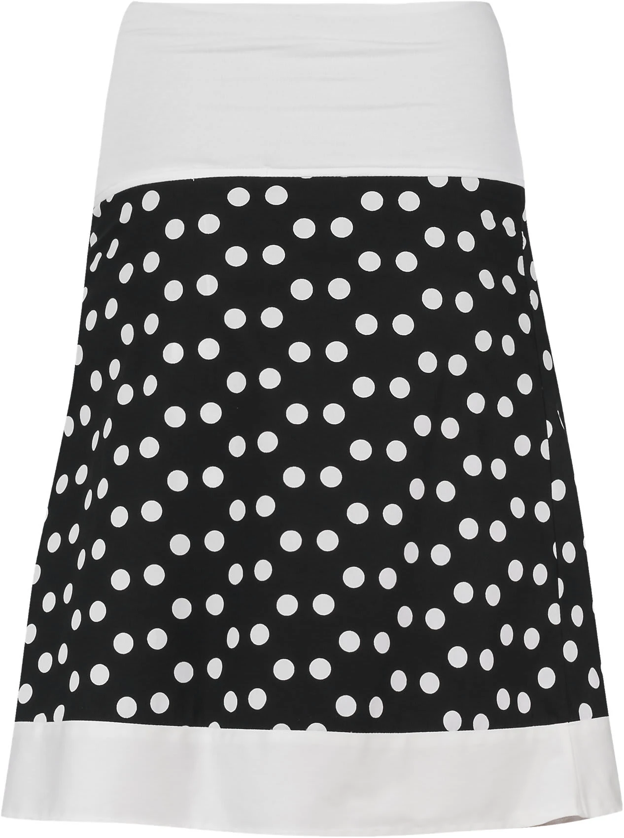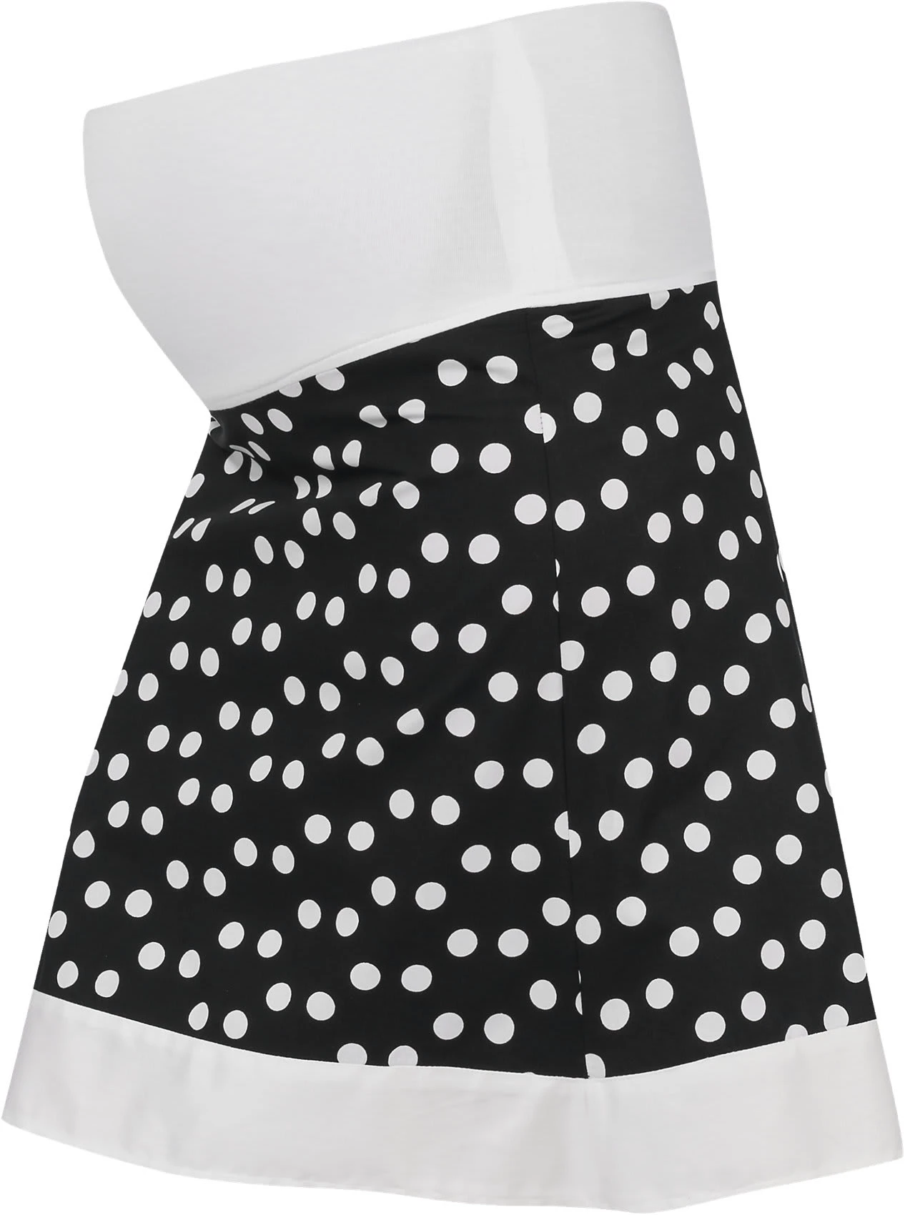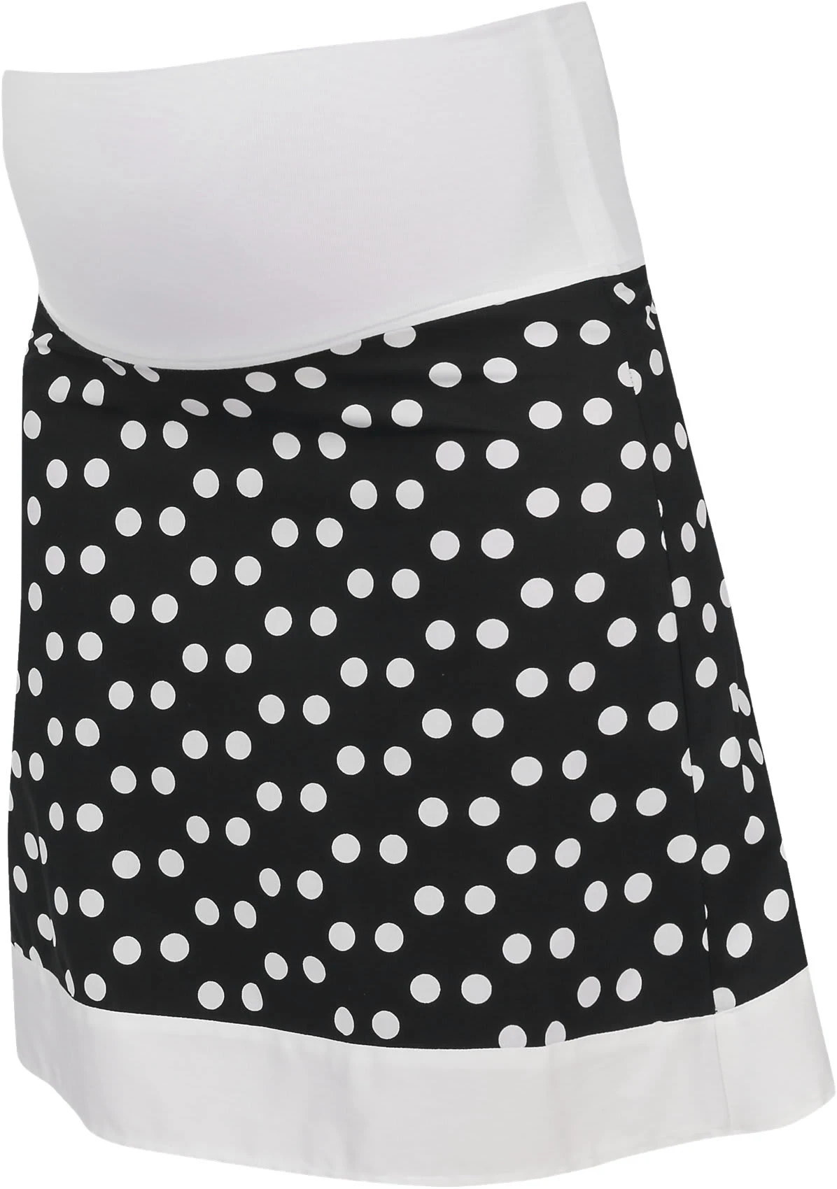 Mit großflächigem Punktemuster und bester Baumwolljersey-Qualität begeistert der Umstandsrock Liz von BEBEFIELD. Der breite, elastische Bund passt sich ideal an den wachsenden Bauch an ohne einzuengen.