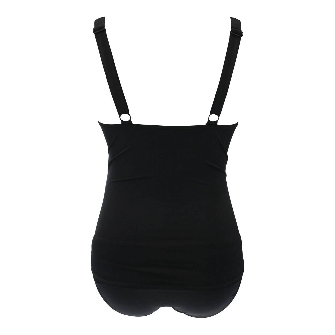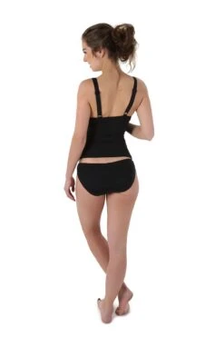 Das Umstandstankiniset AMANDA in klassischem Schwarz kommt in den Größen S-XXL aus edler Mikroqualität besonders edel daher, ist ideal geschnitten & passend für Körbchengrößen B C bis D als Softcup und hat keine Bügel. Es fällt eher klein als groß aus.