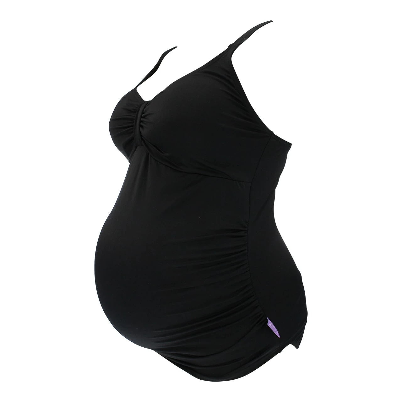 Dieses Tankinitoberteil mit raffinierter Verarbeitung und herausnehmbaren nahtlosen Polstern hat einen schönen Ausschnitt mit Raffung und Steg. Durch die raffiniert eingearbeitete Mehrweite in den Seitennähten wächst die Umstandsbademode sowohl in der Vorderlänge als auch mit dem Babybauchumfang mit.