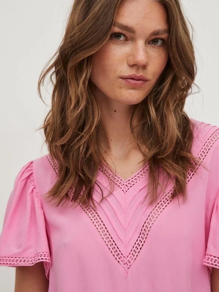 Bluse von Vila. Pflegehinweise: 30°C Pflegeleicht, Nicht bleichen, Trocknen auf der Wäscheleine, Nicht im Wäschetrockner trocknen, Nicht heiß bügeln, Nicht trockenreinigen